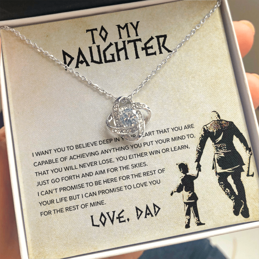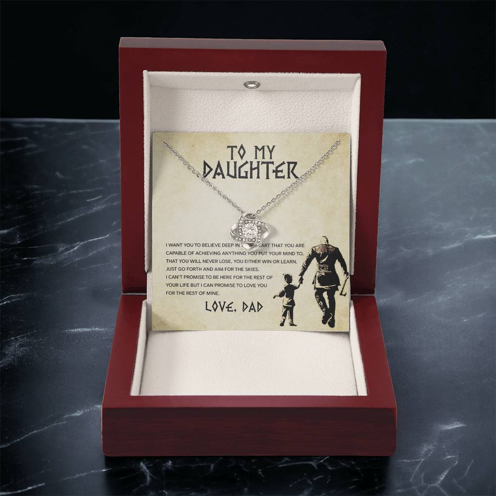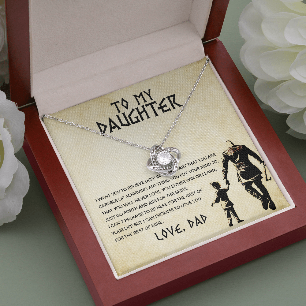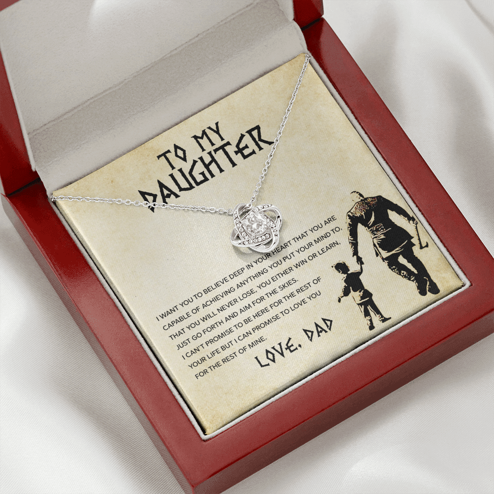 Tell your daughter you believe in her dreams and limitless potential with the Daughter – Aim For The Skies Necklace. This beautifully crafted love knot necklace is designed to be a daily reminder that she is capable of anything she sets her mind to, that challenges are just steps toward greater heights, and that she is loved beyond measure. Every time she wears it, she’ll feel your pride, support, and encouragement guiding her forward. Whether it’s for a birthday, graduation, milestone moment, or “just because,” this necklace becomes a treasured keepsake of your unwavering love and belief in her future. The message behind this piece inspires her to spread her wings and aim for the skies, knowing you are always cheering her on.